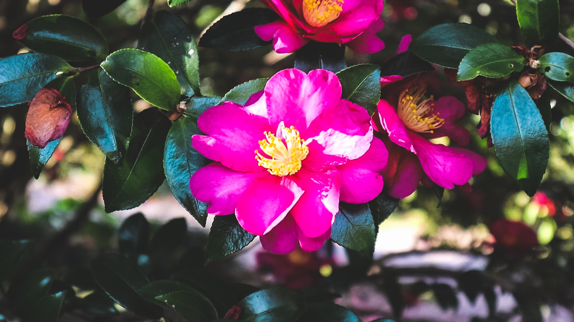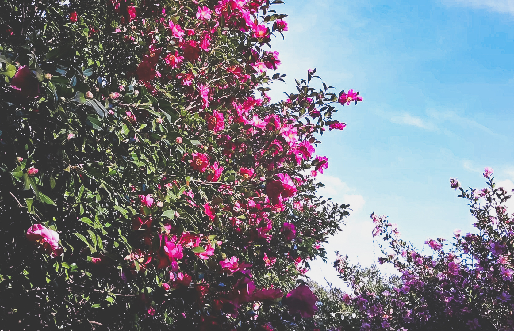 붉은 동백, 분홍빛 동백, 흰 동백. 많은 동백이 곳곳에 피어있다. 동백은 남해안에 접한 경상남도, 전라남도, 부산, 제주에 주로 서식하는 겨울에만 피는 꽃. 동백이 만개했을 때도 너무 예쁘지만 대개의 꽃이 꽃잎이 하나하나 떨어지며 지는 것과 다르게 동백꽃은 질 때 꽃잎이 전부 붙은 채로 한 송이씩 떨어지기 때문에 꽃이 질 무렵에도 멋진 사진을 남길 수 있다. 카멜리아 힐을 조금만 검색해봐도 많은 사람들이 그야말로 인생 사진을 남긴 것을 볼 수 있다. 나도 그런 꿈을 꿔 봤지만... 밀려드는 인파에 실패!