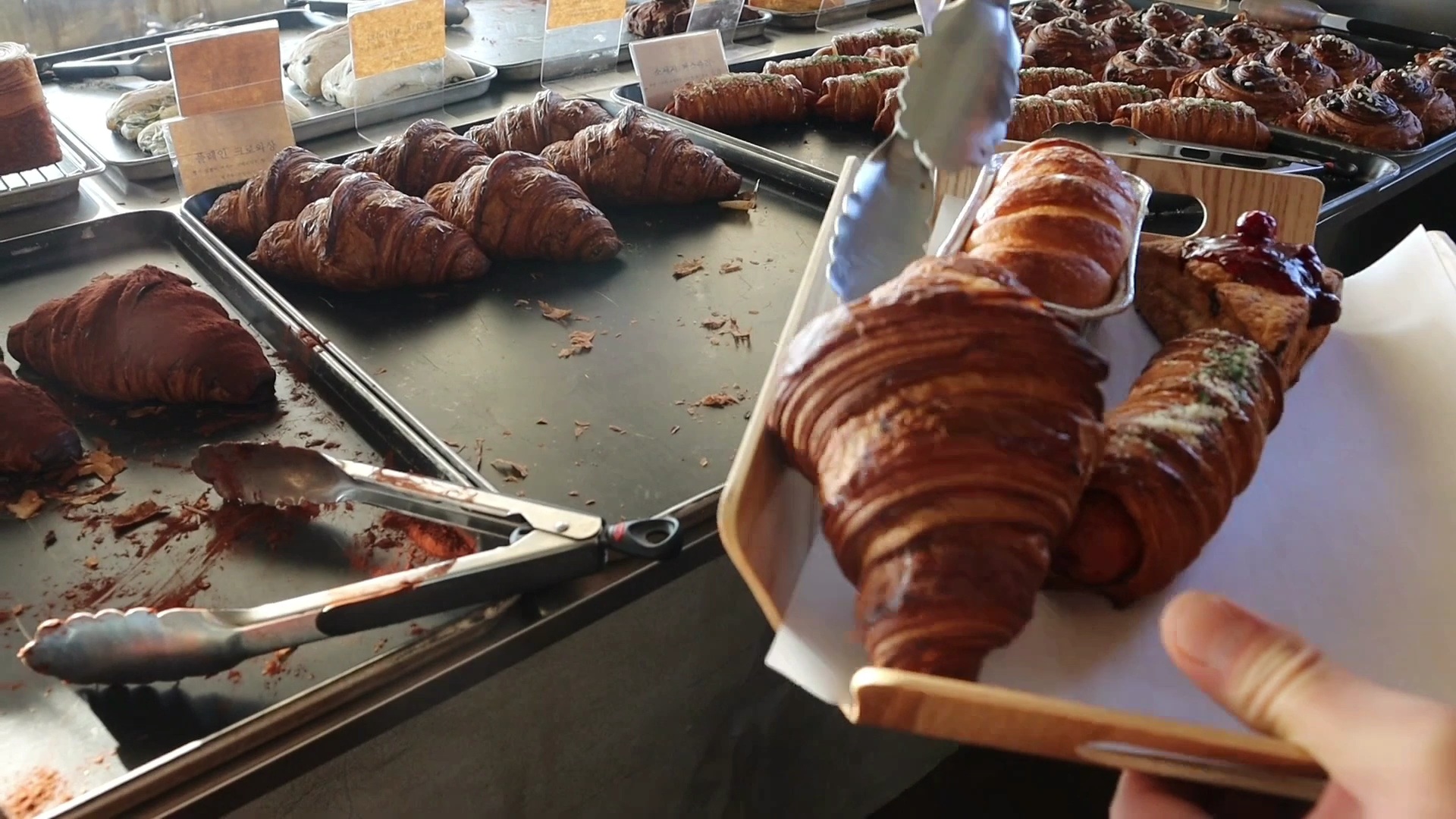 빵순이에게는 더할 나위 없이 행복했던 순간. 아침에 제주에 와서 해가 넘어가는 시간까지 아무것도 먹지 않고 일정을 소화하고 있던 우리는 빵 냄새에 무너지고 말았다. 저녁 먹을 때까지 조금만 참아야지 했지만 나도 모르게 자꾸만 빵을 담고 있었다.