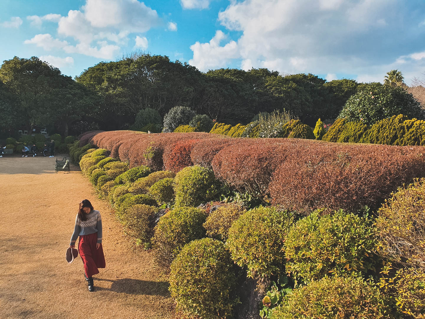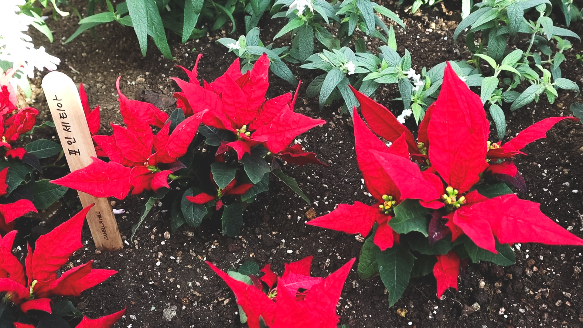 식물을 좋아하는 사람이라면, 산책하기 정말 좋은 곳이다. 동백뿐만 아니라 곳곳에 다른 식물들도 구경할 수 있다. 나는 이렇게 땅에 심어져 있는 포인세티아 실물을 처음으로 봤는데 신기하고 예뻐서 눈을 뗄 수가 없었다.