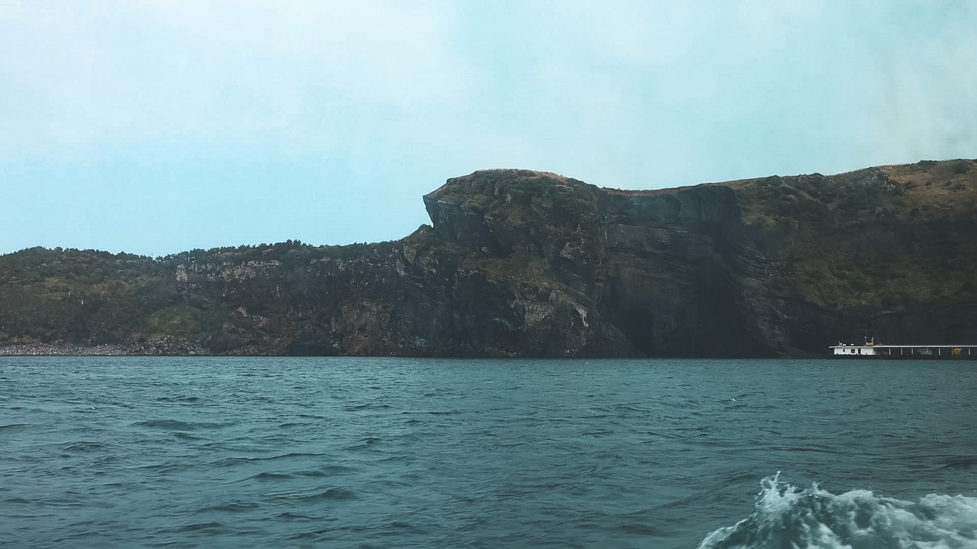 우도 여행일정 중 가장 손꼽아 기다렸던 일정. 바로 잠수함을 타는 것! 사실 설렘 반 두려움 반이였다. 물을 좋아하긴 하지만 폐쇄공포증이 있어 하와이에 신혼여행 갔을 때도 바닷속 깊이 들어가서 걷는 레저를 포기한 이력이 있다. 잠수함은 좀 다르지않을까 생각하지만 그래도 걱정이 되긴 했다. 잠수함을 타기 위해 배를 타고 이동하는데, 파도가 높아 배가 제법 울렁거렸다. 도착하면 저 섬을 배경으로 기념사진도 찍어준다. 그냥 무료로 찍어 주는 것이니, 받아오면된다. 이곳에 올리기에는 민망하지만 나는 특유의 느낌이 좋아서 액자에 넣어 거실 한켠에 두었다.